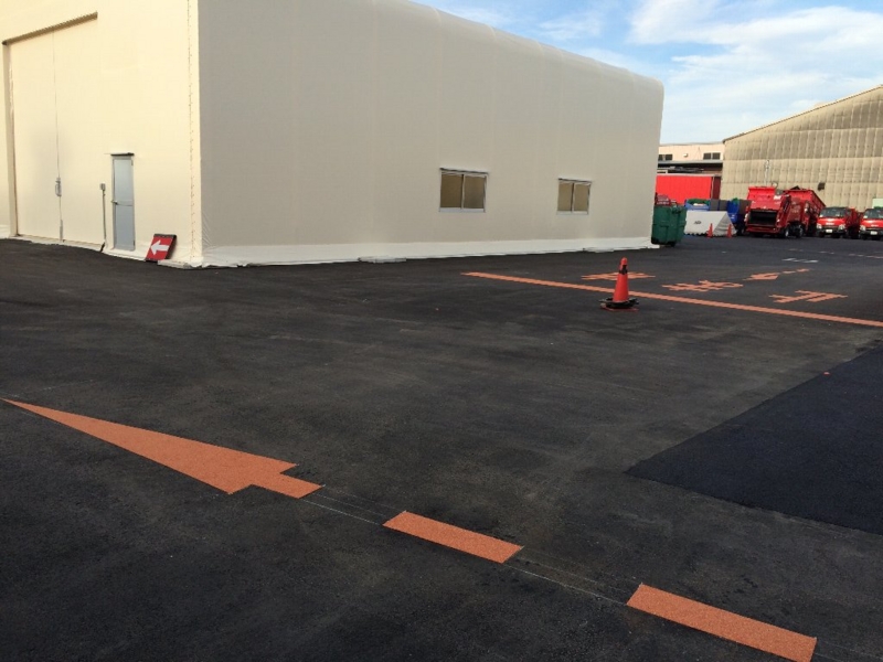 目地材をとって完成です。リサイクル製品で作成しました道路標示です。とてもきれいな仕上がりになっております。