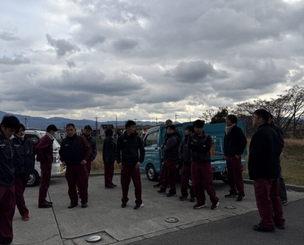 4日は季節風で寒い中16名で、本日11日は快晴ポカポカ陽気のもと18名で仕上げました。